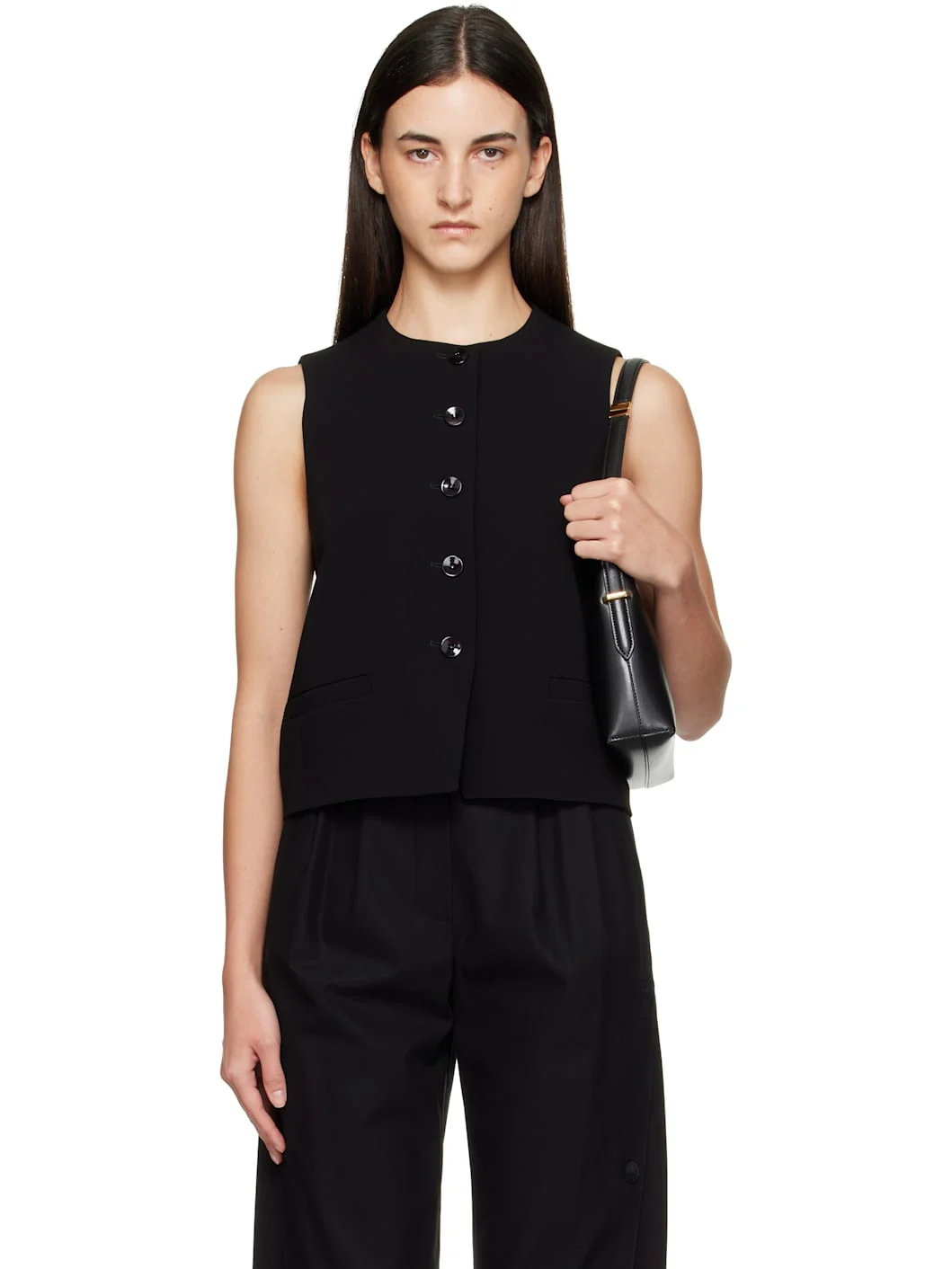 Crepe vest. · Round neck · Button closure · Welt pockets at waist · Sateen lining Supplier color: Black Body: 65% triacetate, 35% polyester. Lining: 65% acetate, 35% polyester. Made in Italy 252118F068000