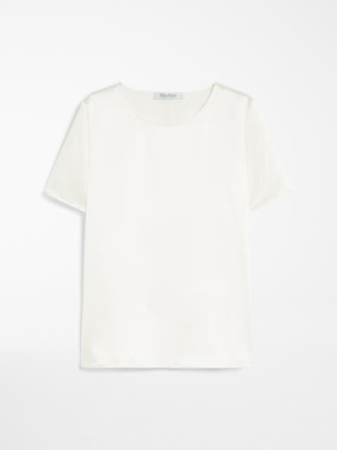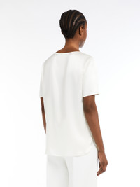 DETAILS Short-sleeved blouse in fine pure silk satin fabric featuring a figure-skimming cut with a crew neckline and small side slit detail at the hem. COMPOSITION AND CARE 100% silk. Do not wash; do not bleach; do not tumble dry; cool iron; professionally dry clean perchloroethylene - mild process; do not wet clean.; iron with a cloth between. Distributed by Max Mara S.r.l., registered office in Reggio Emilia (Italy), Via Giulia Maramotti 4, 42124 (IT)