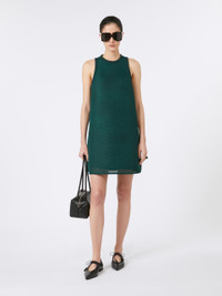 DETAILS Short, sleeveless dress with a wide and flared silhouette. - Dress made of thick technical mesh - Halter neck - Back zip fastening - Knitted crew neck and armhole trim - Incorporated viscose jersey lining COMPOSITION AND CARE Jersey fabric 100% polyester; lining 96% viscose, 4% elastane. Do not wash; do not bleach; do not tumble dry; cool iron; professionally dry clean perchloroethylene - mild process; do not wet clean.; iron with a cloth between. Distributed by Max Mara S.r.l., registered office in Reggio Emilia (Italy), Via Giulia Maramotti 4, 42124 (IT)