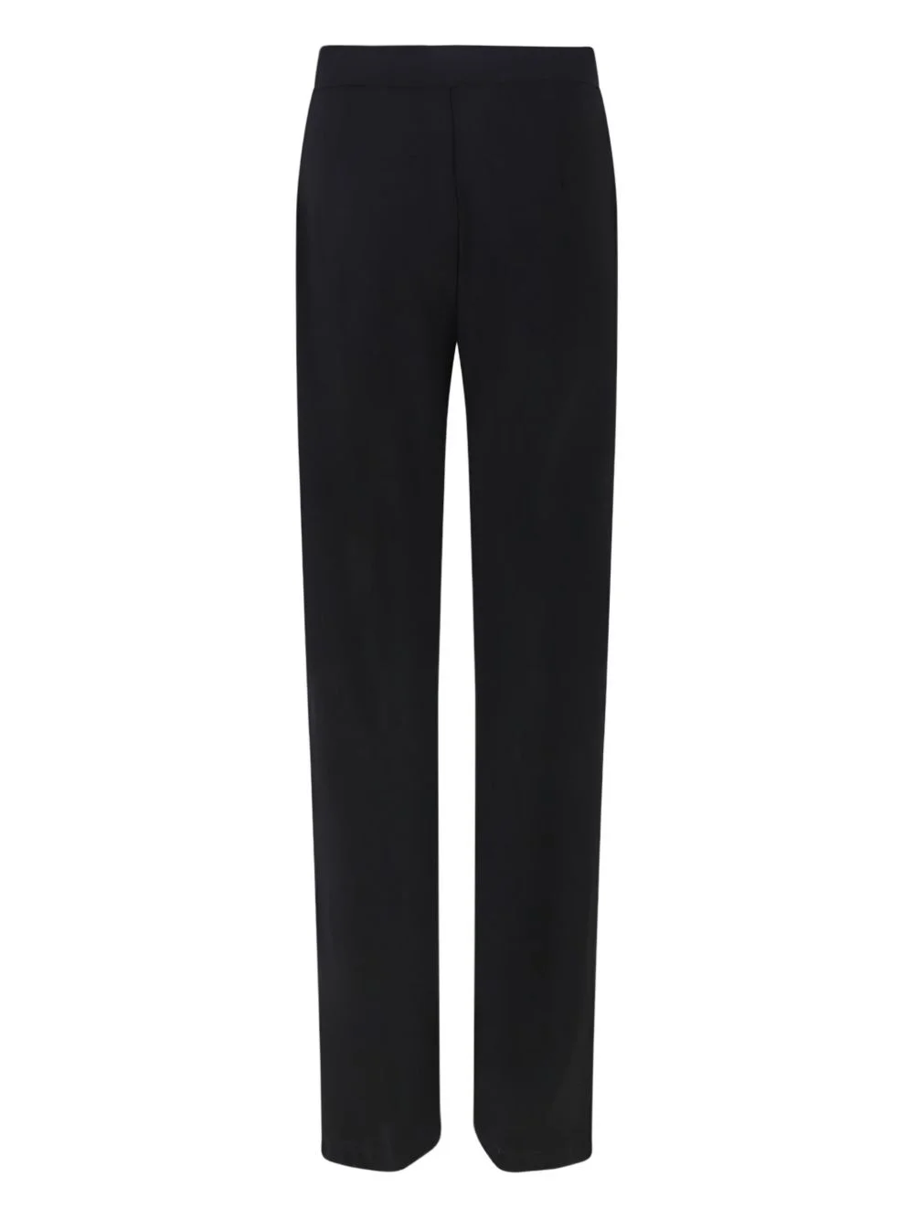 straight-leg trousers Highlights - Black - Concealed front fastening - Two side slash pockets Imported Composition Viscose 95%, Spandex/Elastane 5%