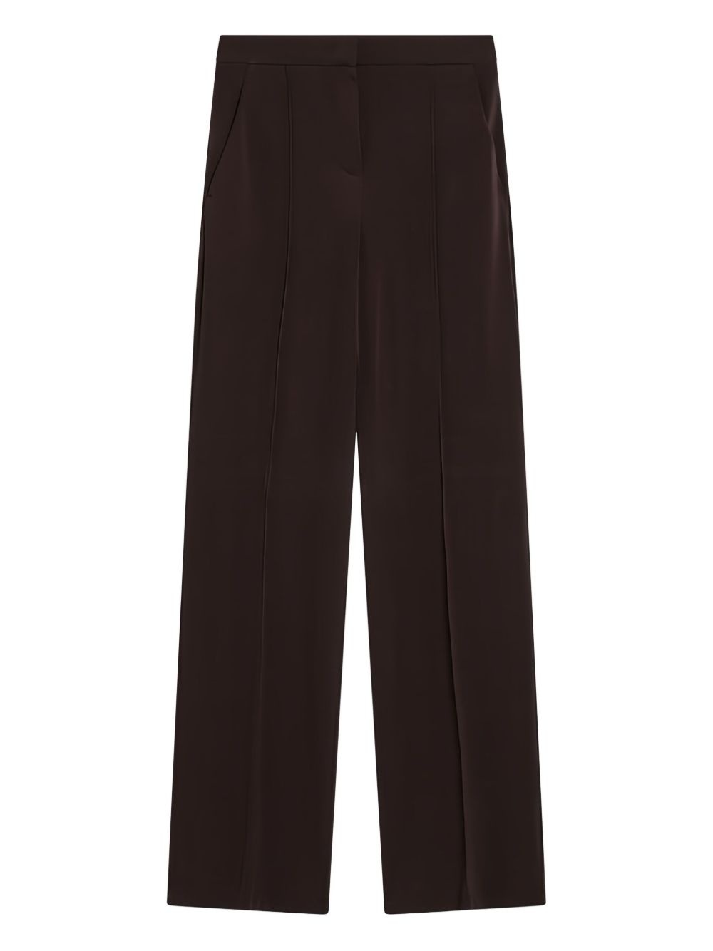 straight-leg trousers Highlights - Brown - Hook and zip fly fastening - Two side slit pockets Imported Composition Viscose 95%, Elastane 5%