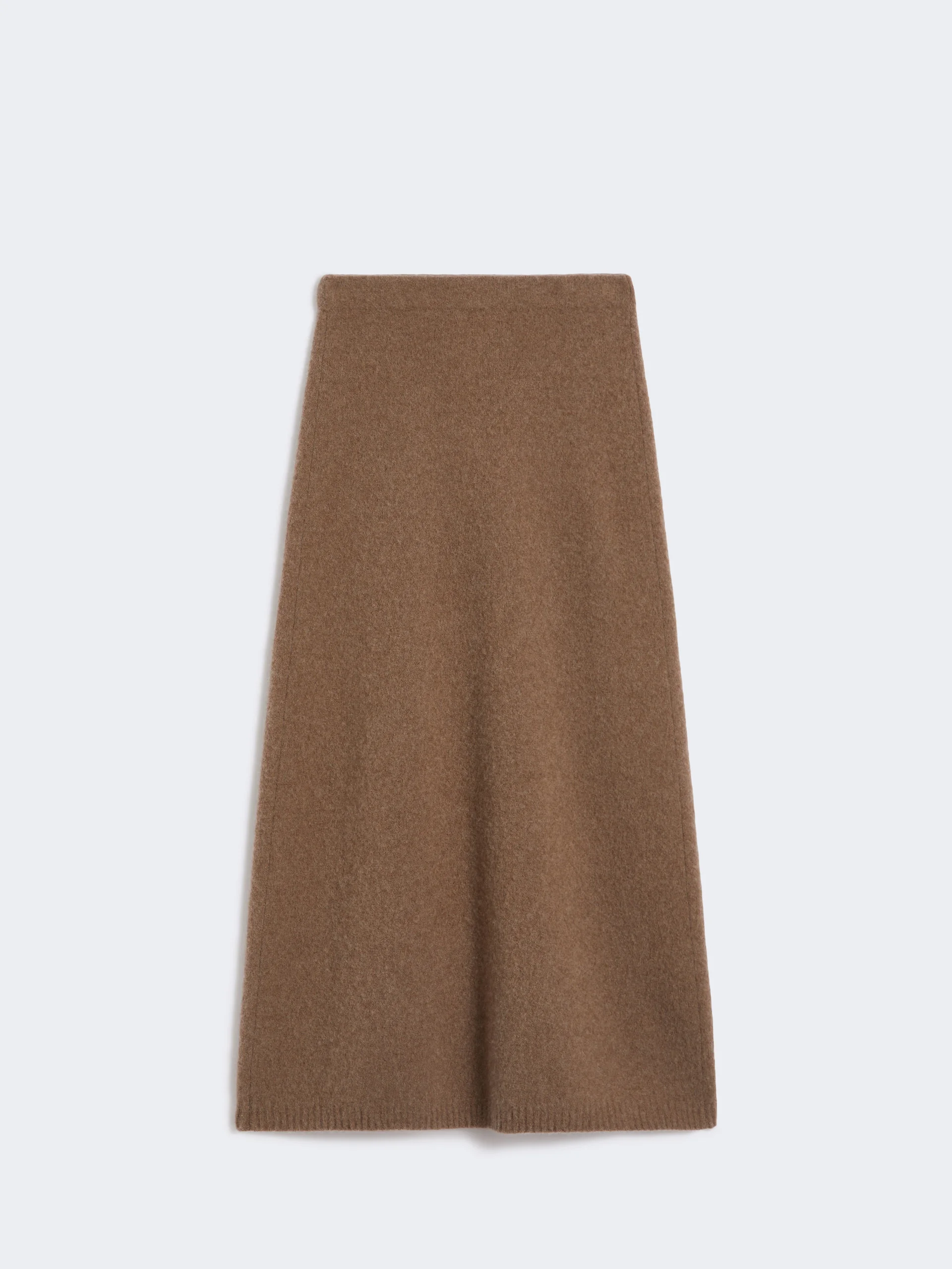 DETAILS Long skirt with a distinctive figure-hugging silhouette that is slightly flared at the hem. Stretch cashmere plain-knit skirt Flared at the hem Elasticated waist Ribbed trim Unlined COMPOSITION AND CARE 76% cashmere, 21% polyamide, 3% elastane. Hand wash cold (40°c max); do not bleach; do not tumble dry; flat drying in the shade; cool iron; professionally dry clean perchloroethylene - mild process; do not wet clean.; iron with a cloth between.; using neutral detergent. Distributed by Max Mara S.r.l., registered office in Reggio Emilia (Italy), Via Giulia Maramotti 4, 42124 (IT)