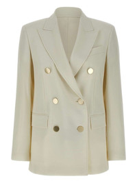 peaked-lapel double-breasted blazer Highlights - Off-white - Double-breasted fastening - Peaked lapels - Long sleeves - Button cuffs - Flap pockets Imported Composition Lining: Acetate 70%, Polyester 30% Outer: Wool 100% Washing instructions Read Manufacturer Guidelines
