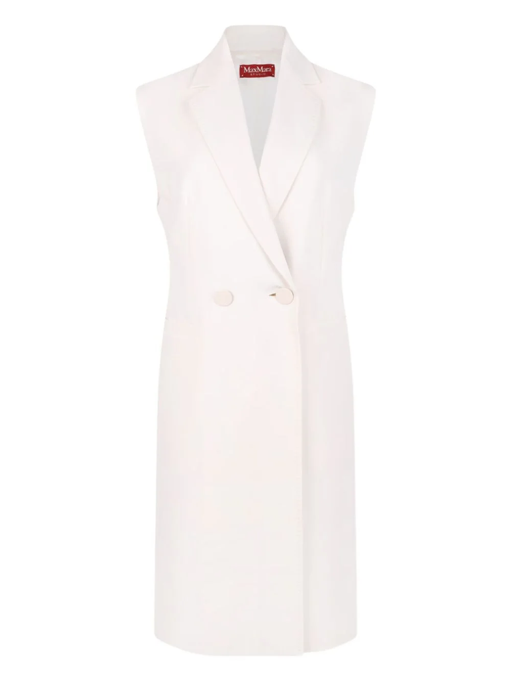 double-breasted sleeveless coat Highlights - Off-white - Double-breasted closure - Sleeveless design - Notched lapel - Button fastening Imported Composition Triacetate 71%, Polyester 29%