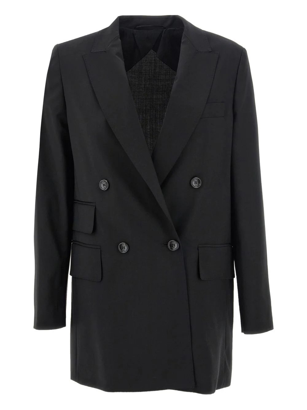 double-breasted wool blazer Highlights - Black - Double-breasted closure - Button detailing - Long sleeves - Buttoned cuffs - Flap pockets Made in Italy Composition Virgin Wool 100% Washing instructions Read Manufacturer Guidelines