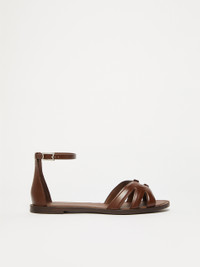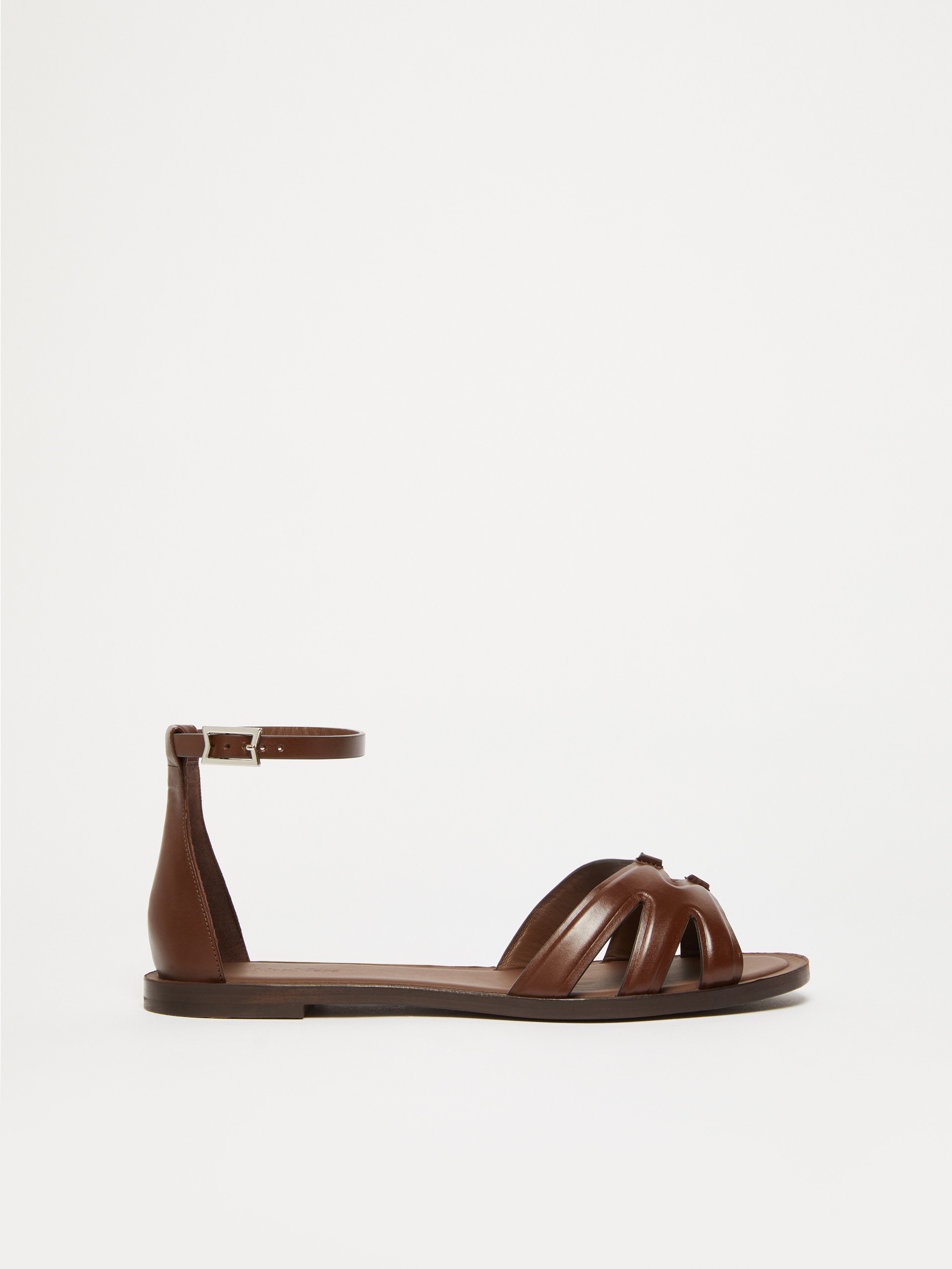 DETAILS Flat sandals in smooth natural leather with a shiny finish. Style with a round toe and covered heel, featuring a cut-out band at the toe and an adjustable ankle strap with a logo buckle. Leather lining and sole. COMPOSITION AND CARE Upper in cattle; lining in calf; sole in leather. Distributed by Max Mara S.r.l., registered office in Reggio Emilia (Italy), Via Giulia Maramotti 4, 42124 (IT)