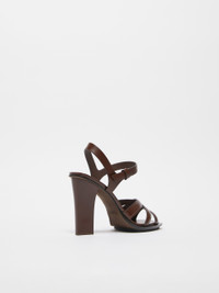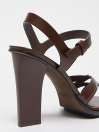 DETAILS Caged sandals in shiny-finish natural leather featuring a cut-out toe band, slingback strap and side buckle-adjustable instep strap. The square-toe model boasts a 9.5 cm-high horn-look column heel and a leather sole. COMPOSITION AND CARE Upper in cattle; lining in calf; sole in leather. Distributed by Max Mara S.r.l., registered office in Reggio Emilia (Italy), Via Giulia Maramotti 4, 42124 (IT)