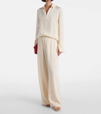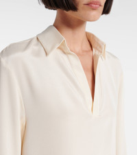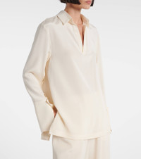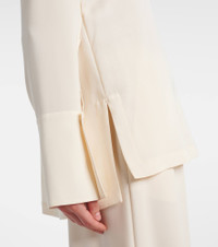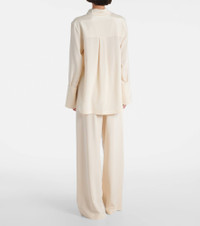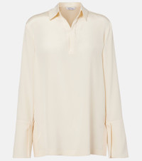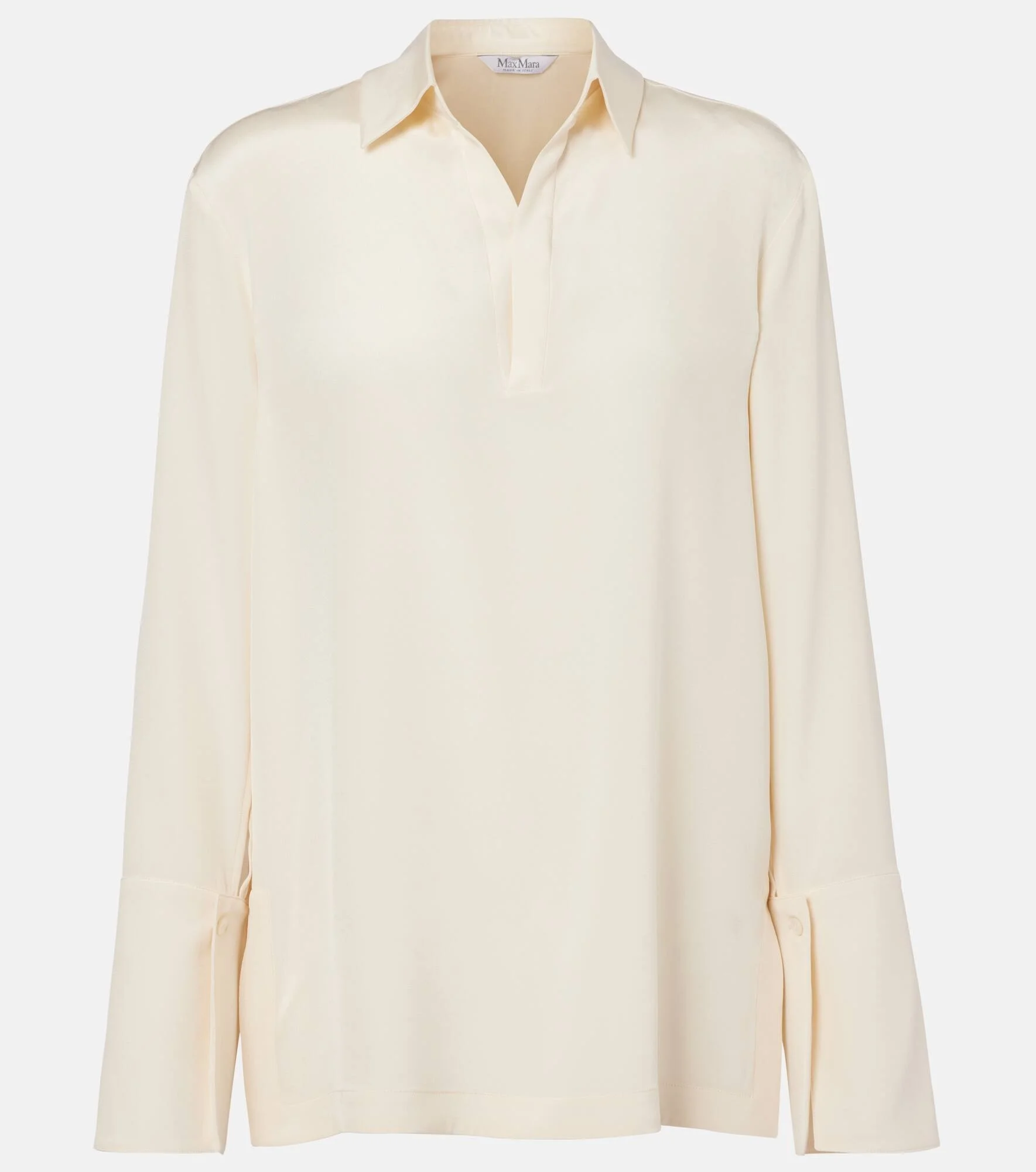 Boasting a rich manufacturing history, Max Mara represents the quintessence of Italian sophistication and expertise. The Dover shirt is made from silk-blend cady and cut to a fluid, clean silhouette. Product Details - Material: 93% silk, 7% elastane - Care instructions: dry clean - Made in Italy - Designer color name: Tela - Item color: ivory - Closure: open front - Collar: one-piece - Cuff: one button - Side slits - Relaxed fit - Item number: P01077477 Size & Fit - True to size - Dropped shoulders - Designed for a loose fit - Non-stretchy fabric - Falls below the hip - The model seen in the picture is 178cm-5'10" and wearing a size DE 34