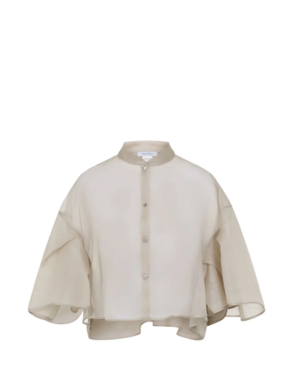 draped silk cape Highlights - Sand beige - Draped detail - High neck - Front button fastening - Semi-sheer construction Made in Italy Composition Silk 100% Washing instructions Read Manufacturer Guidelines