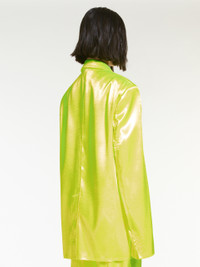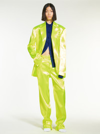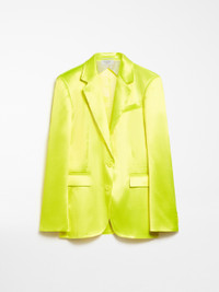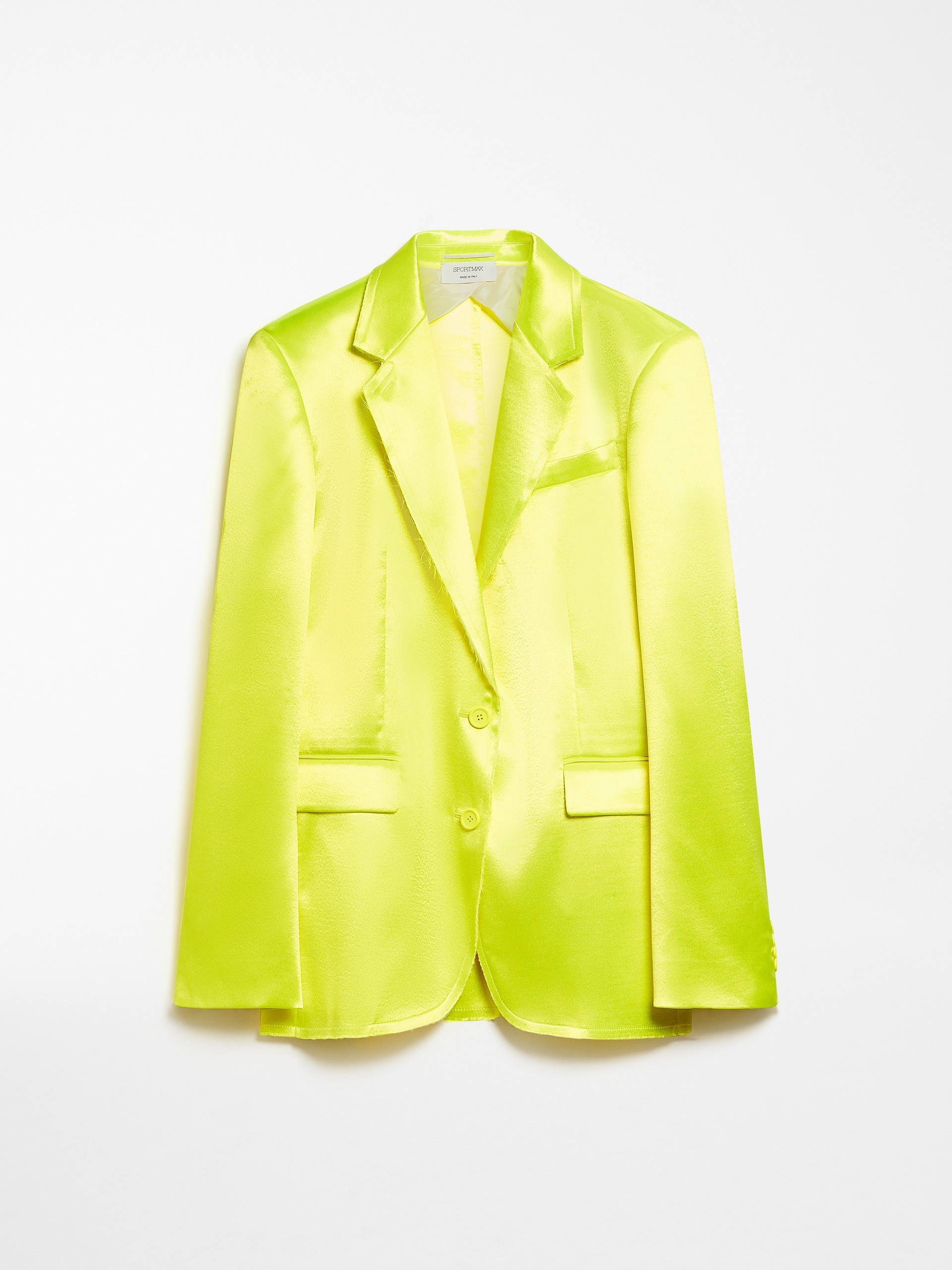 DETAILS Oversized blazer in technical duchess satin, with wide shoulders and masculine lines. Half-lined, with low fastening, wide sleeves and flap pockets. Raw-cut edges throughout. • Blazer in bonded technical crêpe duchess satin • Oversized fit • Broad, structured shoulders • Wide sleeves • Flap pockets and men’s-style pockets on the chest • Half-lined construction • Raw-cut edges COMPOSITION AND CARE Fabric 100% polyester; lining 63% viscose, 37% polyester; sleeves lining 100% viscose. Do not wash; do not bleach; do not tumble dry; cool iron; professionally dry clean perchloroethylene - mild process; do not wet clean.; wash the garment while it is fastened.; don’t iron the labels.; turn the articles inside out before washing. Distributed by Max Mara S.r.l., registered office in Reggio Emilia (Italy), Via Giulia Maramotti 4, 42124 (IT)