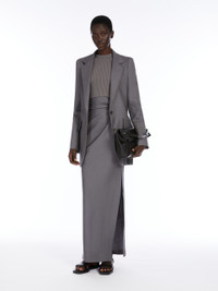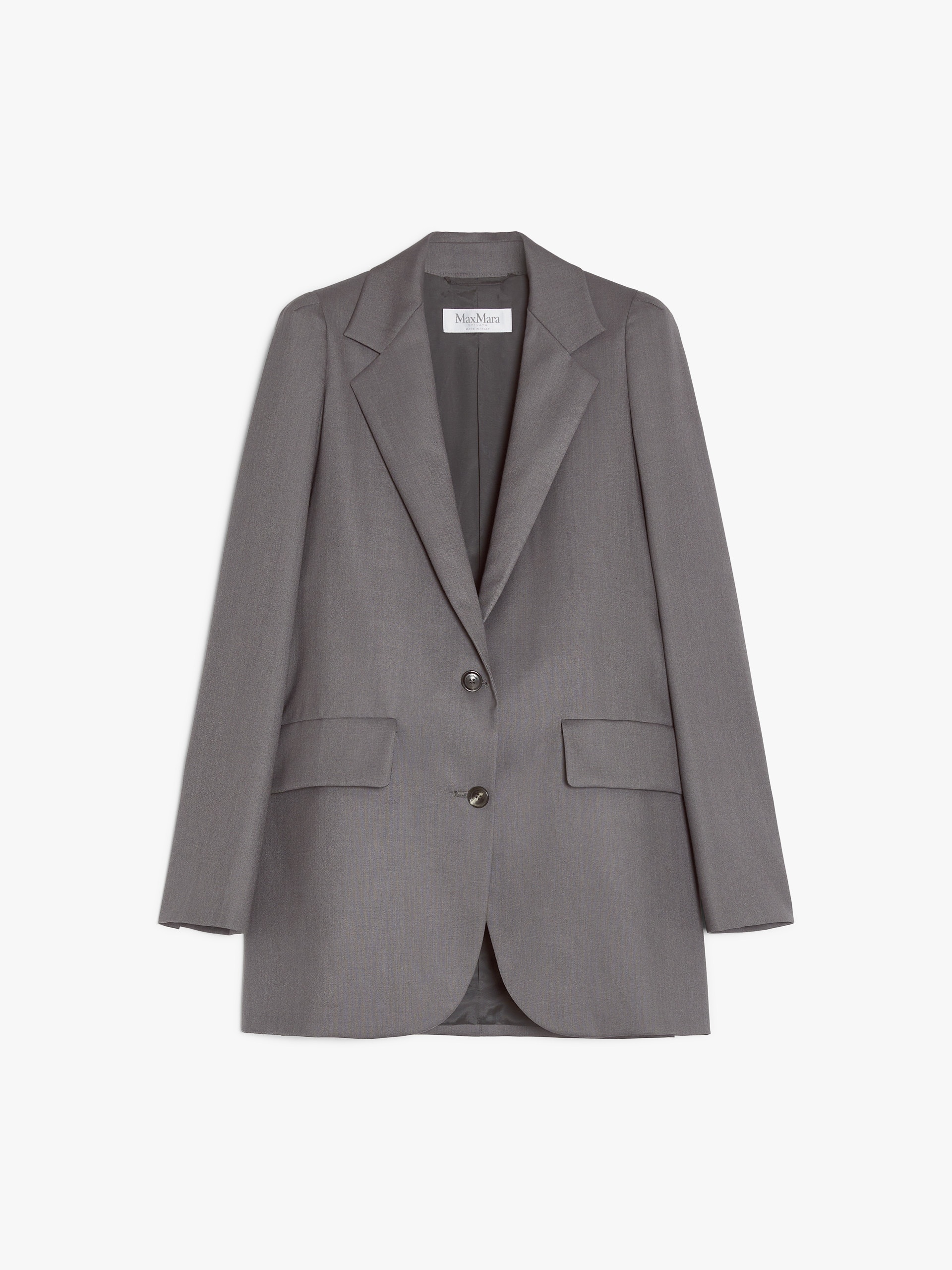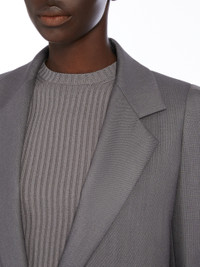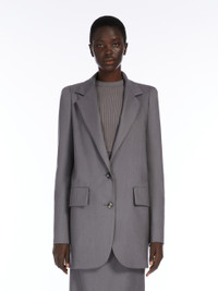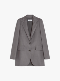 DETAILS Single-breasted blazer with an elongated line, made of luxurious wool, mohair and silk cloth. The garment features an oversized fit with lapel collar, long set-in sleeves and patch pockets with flap on the front. Lined and featuring a stitched pleat motif on the shoulders and a front fastening with two visible buttons. COMPOSITION AND CARE Fabric 71% virgin wool, 18% mohair, 11% silk; lining 54% viscose, 46% cotton. Do not wash; do not bleach; do not tumble dry; cool iron; professionally dry clean perchloroethylene - mild process; do not wet clean.; do not iron the buttons.; protect buttons before washing.; contains non-textile parts of animal origin. Distributed by Max Mara S.r.l., registered office in Reggio Emilia (Italy), Via Giulia Maramotti 4, 42124 (IT)