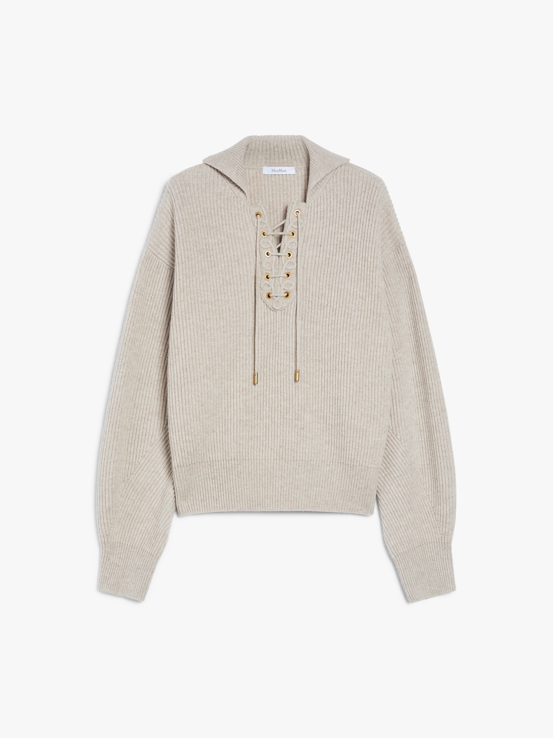 DETAILS long-sleeved jumper made of a luxurious wool and cashmere yarn in a fisherman’s rib knit. The relaxed fit style features a polo shirt-style collar decorated with fabric toggles and metal eyelets. COMPOSITION AND CARE Knitted fabric 70% wool, 30% cashmere; outer fabric 90% wool, 10% cashmere; inner fabric 100% cotton. Do not wash; do not bleach; do not tumble dry; cool iron; professionally dry clean perchloroethylene - mild process; do not wet clean.; iron with a cloth between. Distributed by Max Mara S.r.l., registered office in Reggio Emilia (Italy), Via Giulia Maramotti 4, 42124 (IT)