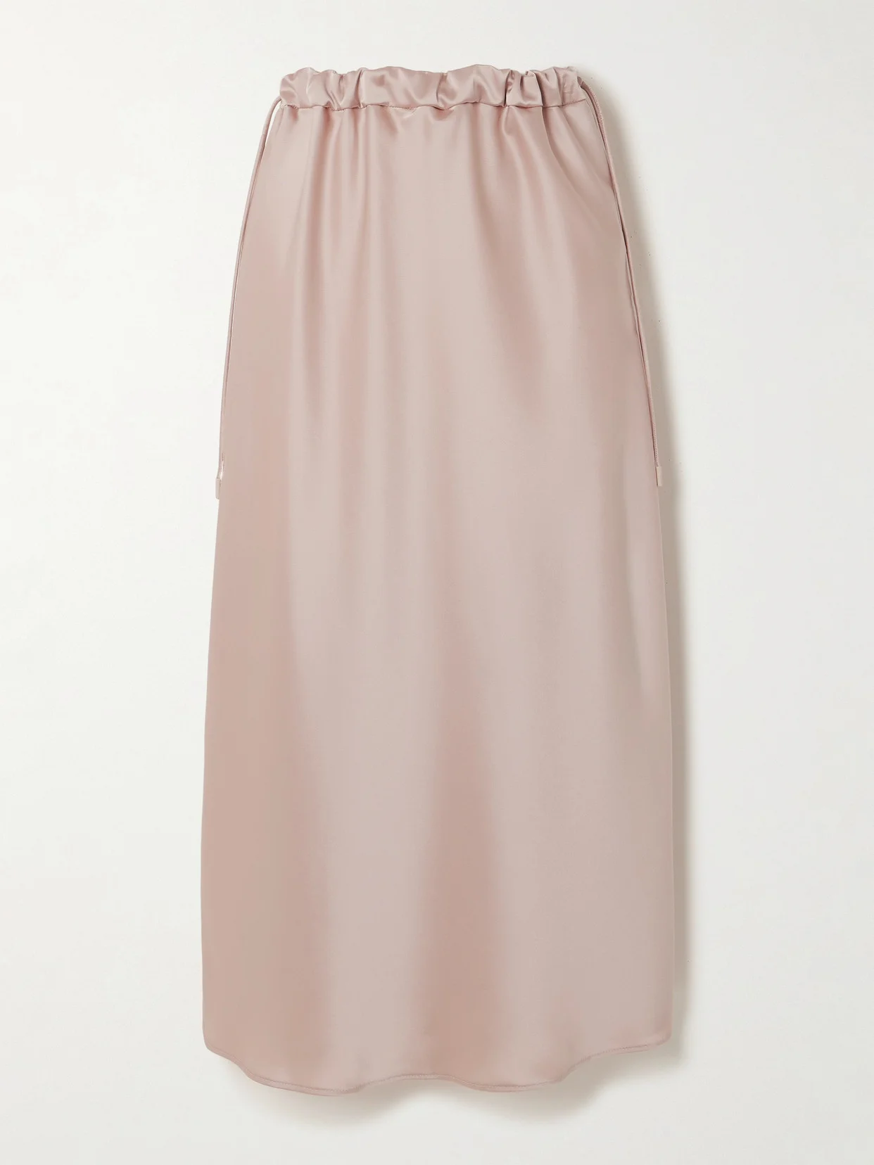 Max Mara's 'Editore' skirt is made from satin in a pretty 'Powder' shade and has a beautiful luster. It's fitted with a drawstring waistband that creates a gathered effect and gently skims the hips before falling to a floaty midi hem.