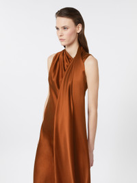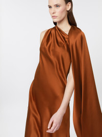 DETAILS Midi cocktail dress featuring a cape detail that can be worn freely or draped over the right shoulder for versatile styling. Dress in heavy pure-silk satin Fitted, feminine line Asymmetrical teardrop neckline Sleeveless Concealed zip fastening at the side Bodice gathered on the right shoulder as worn Unlined COMPOSITION AND CARE Fabric 100% silk; lining 100% silk. Do not wash; do not bleach; do not tumble dry; cool iron; professionally dry clean perchloroethylene - mild process; do not wet clean.; iron with a cloth between. Distributed by Max Mara S.r.l., registered office in Reggio Emilia (Italy), Via Giulia Maramotti 4, 42124 (IT)