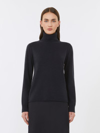 DETAILS Polo-neck sweater featuring a fold-down rib-knit high neck. Wool and cashmere yarn polo-neck sweater Regular fit Long set-in sleeves Rib-knit cuffs and hem Straight hem COMPOSITION AND CARE 80% wool, 20% cashmere. Hand wash cold (40°c max); do not bleach; do not tumble dry; flat drying in the shade; cool iron; professionally dry clean perchloroethylene - mild process; do not wet clean.; iron with a cloth between.; using neutral detergent. Distributed by Max Mara S.r.l., registered office in Reggio Emilia (Italy), Via Giulia Maramotti 4, 42124 (IT)