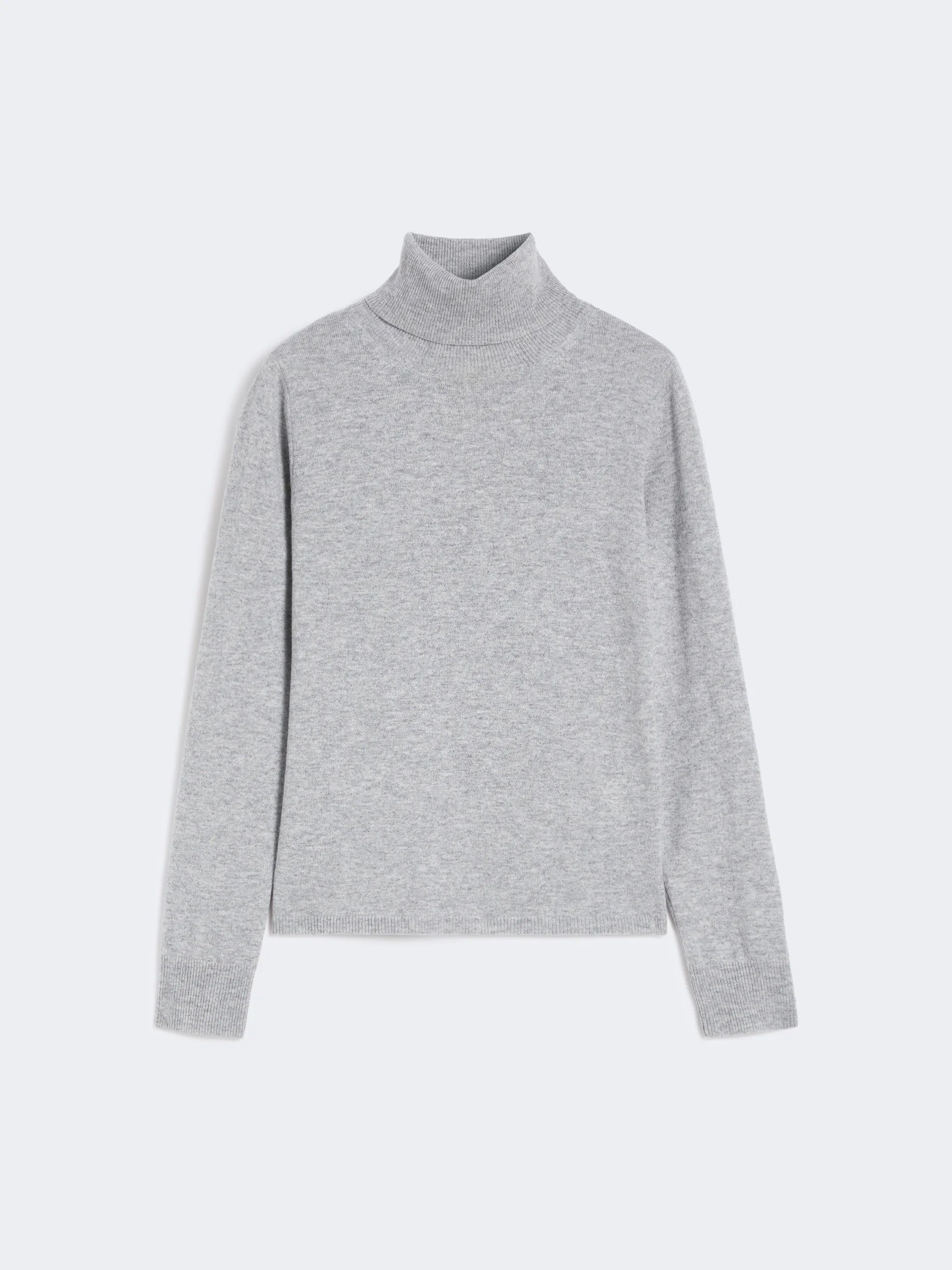 DETAILS Turtleneck sweater crafted from a wool and cashmere blend, featuring a high fold-over collar. Its special knit structure ensures balanced proportions without compromising comfort. Wool and cashmere yarn turtleneck sweater Regular fit Fold-down rib-knit high neck Long set-in sleeves Rib-knit cuffs and hem Straight hem COMPOSITION AND CARE 80% wool, 20% cashmere. Hand wash cold (40°c max); do not bleach; do not tumble dry; flat drying in the shade; cool iron; professionally dry clean perchloroethylene - mild process; do not wet clean.; iron with a cloth between.; using neutral detergent. Distributed by Max Mara S.r.l., registered office in Reggio Emilia (Italy), Via Giulia Maramotti 4, 42124 (IT)