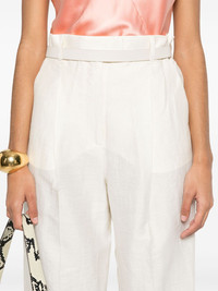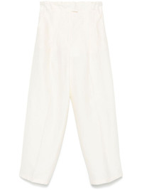 Efedra trousers Highlights - Almond beige - Concealed front button, hook and zip fastening - Belt loops - Two side inset pockets - Two rear patch pockets Made in Italy Composition Linen/Flax 47%, Silk 39%, Polyamide 14% SIZE & FIT Model measurements Height 5 ft 9 in(1.76 m) Bust/Chest 31.1 in(79 cm) Hips 36.61 in(93 cm) Waist 24.8 in(63 cm) FittingInformation Designed for a straight-leg fit, these trousers allow for a close fit at the waist and an unrestricted, comfortable fit over the leg Made from a midweight non-stretch fabric