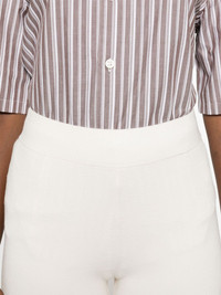 elasticated-waist palazzo trousers Highlights - White - Pull-on style - High-waisted - Flared - Straight hem Imported Composition Viscose 72%, Polyester 28% SIZE & FIT Model measurements Height 5 ft 10 in(1.78 m) Bust/Chest 31.49 in(80 cm) Hips 37 in(94 cm) Waist 23.62 in(60 cm) FittingInformation Designed with a wide-leg cut, these trousers allow for a close fit at the waist and offer a loose and roomy fit over the leg The elasticated waist allows for a comfortable fit Made from a midweight non-stretch fabric, this piece offers minimal elasticity when worn Washing instructions Hand Wash
