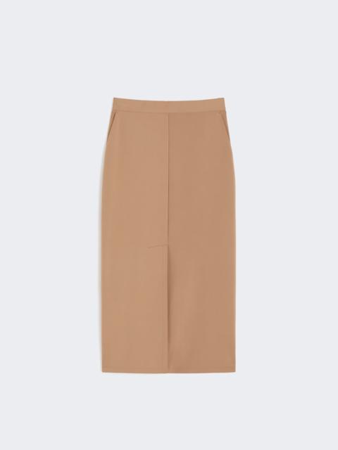 DETAILS Midi skirt, featuring a pencil silhouette with overlapping slits at the front and back. Technical jersey skirt Straight cut Concealed zip fastening at the side Slant pockets at the sides Back waist darts Unlined COMPOSITION AND CARE 86% polyamide, 14% elastane. Hand wash cold (40°c max); do not bleach; do not tumble dry; flat drying in the shade; cool iron; professionally dry clean perchloroethylene - mild process; do not wet clean.; iron with a cloth between.; using neutral detergent.; don’t rub.; turn the articles inside out before washing.; to be ironed on reverse. Distributed by Max Mara S.r.l., registered office in Reggio Emilia (Italy), Via Giulia Maramotti 4, 42124 (IT)