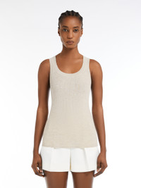 DETAILS Sleeveless streamlined top in luxurious cashmere and wool yarn, featuring a ribbed knit that highlights the silhouette. Round neckline and ribbed edges. COMPOSITION AND CARE 100% virgin wool. Hand wash cold; do not bleach; do not tumble dry; flat drying in the shade; cool iron; professionally dry clean perchloroethylene - mild process; do not wet clean.; iron with a cloth between.; using neutral detergent. Distributed by Max Mara S.r.l., registered office in Reggio Emilia (Italy), Via Giulia Maramotti 4, 42124 (IT)
