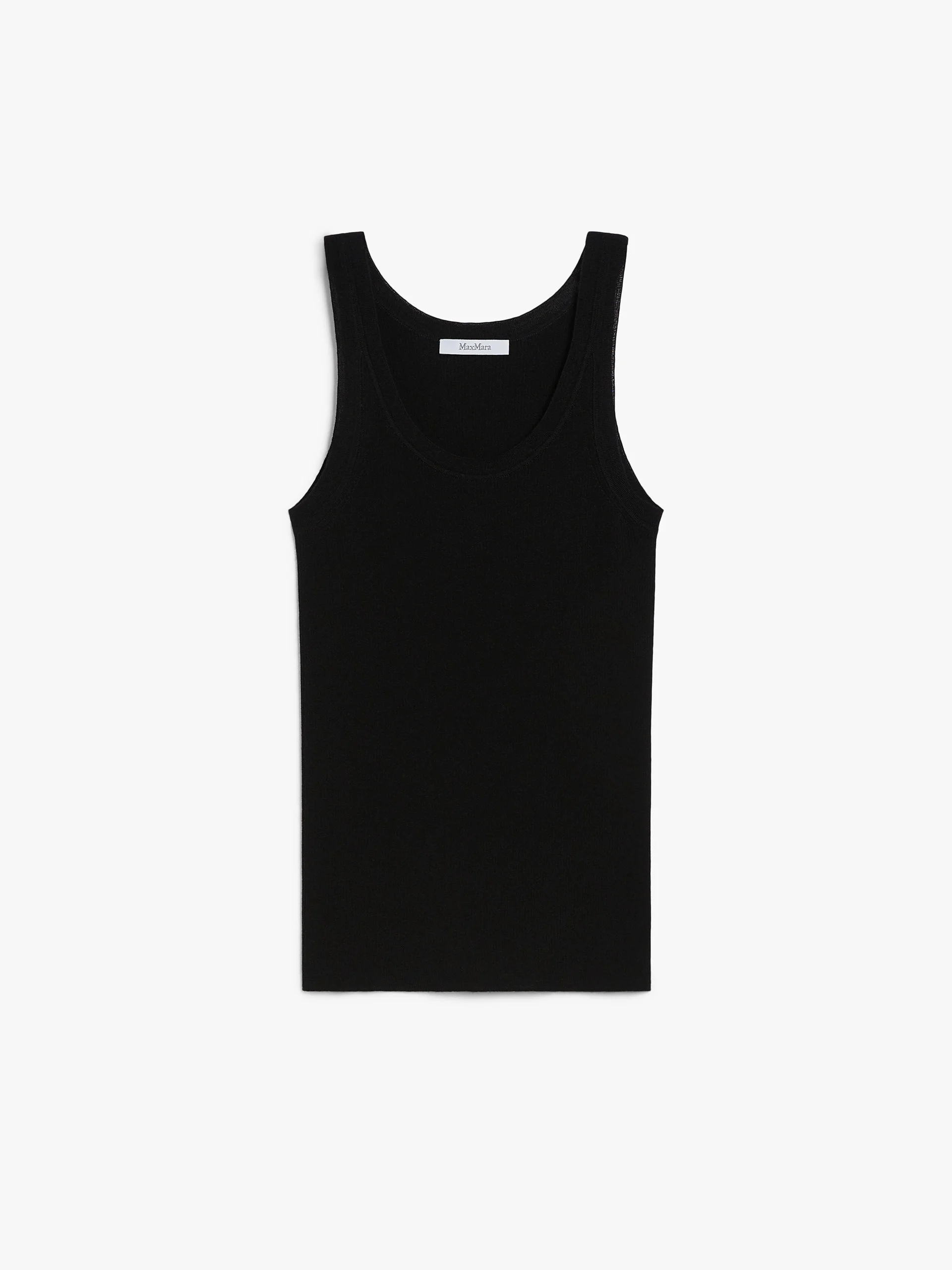 DETAILS Sleeveless streamlined top in luxurious cashmere and wool yarn, featuring a ribbed knit that highlights the silhouette. Round neckline and ribbed edges. COMPOSITION AND CARE 100% virgin wool. Hand wash cold; do not bleach; do not tumble dry; flat drying in the shade; cool iron; professionally dry clean perchloroethylene - mild process; do not wet clean.; iron with a cloth between.; using neutral detergent. Distributed by Max Mara S.r.l., registered office in Reggio Emilia (Italy), Via Giulia Maramotti 4, 42124 (IT)