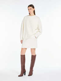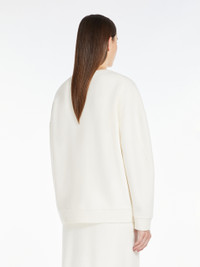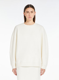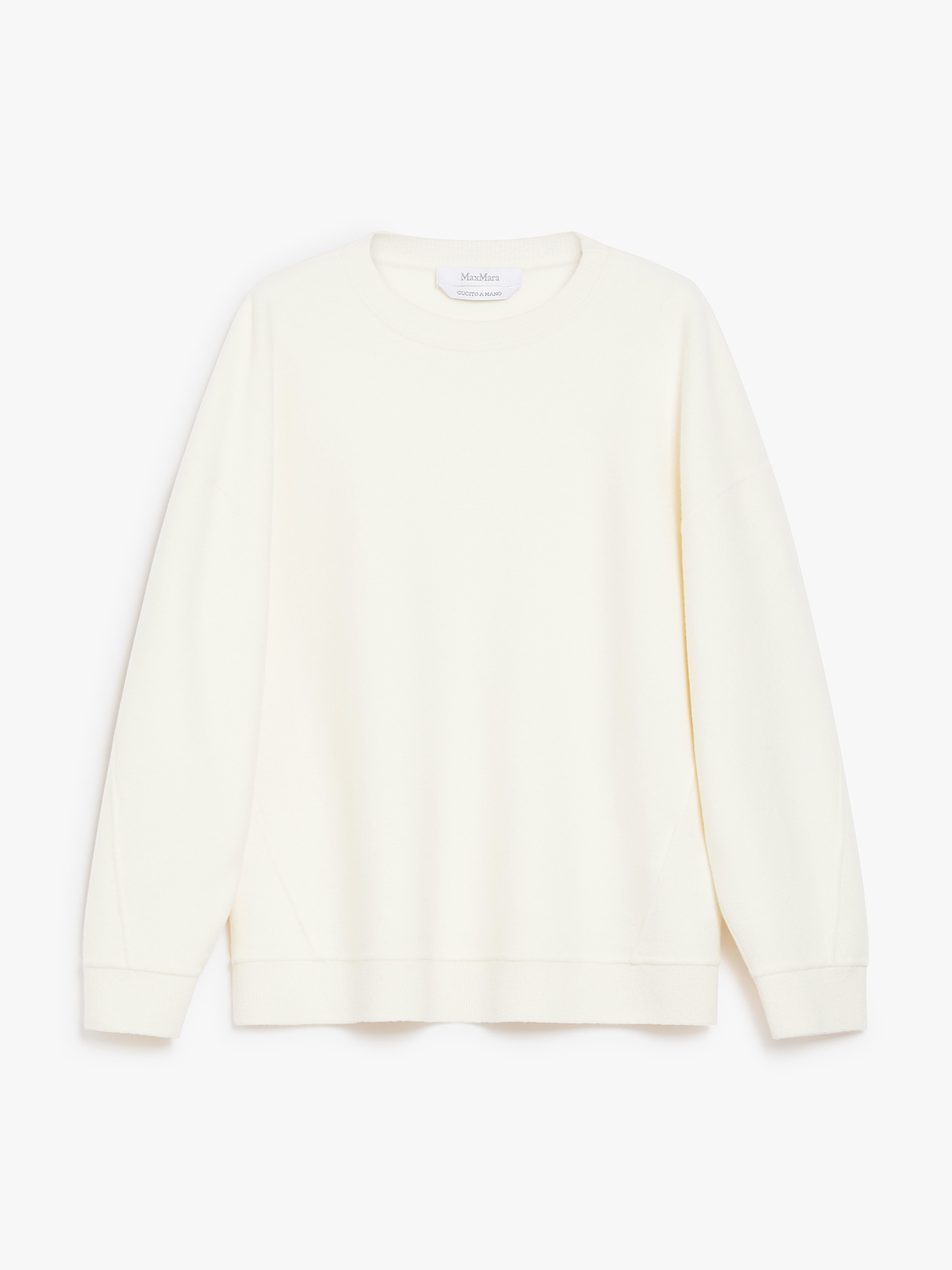DETAILS Slightly oversized crew-neck sweatshirt made of soft wool and cashmere jersey. Garment with long, low set-in sleeves, ribbed knit edges and matching Max Mara lettering embroidered on the bottom of the left sleeve when worn. COMPOSITION AND CARE Jersey fabric 85% virgin wool, 10% cashmere, 5% polyamide; - exclusive of embroideries. Do not wash; do not bleach; do not tumble dry; cool iron; professionally dry clean perchloroethylene - mild process; do not wet clean.; iron with a cloth between. Distributed by Max Mara S.r.l., registered office in Reggio Emilia (Italy), Via Giulia Maramotti 4, 42124 (IT)
