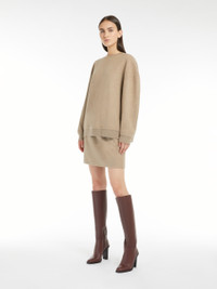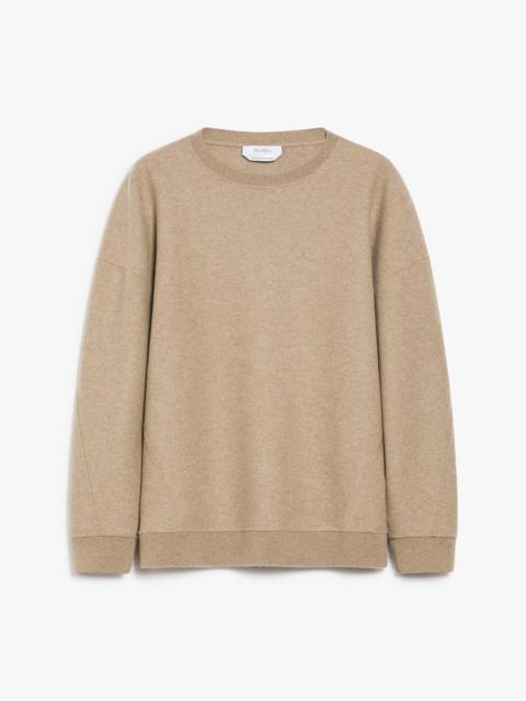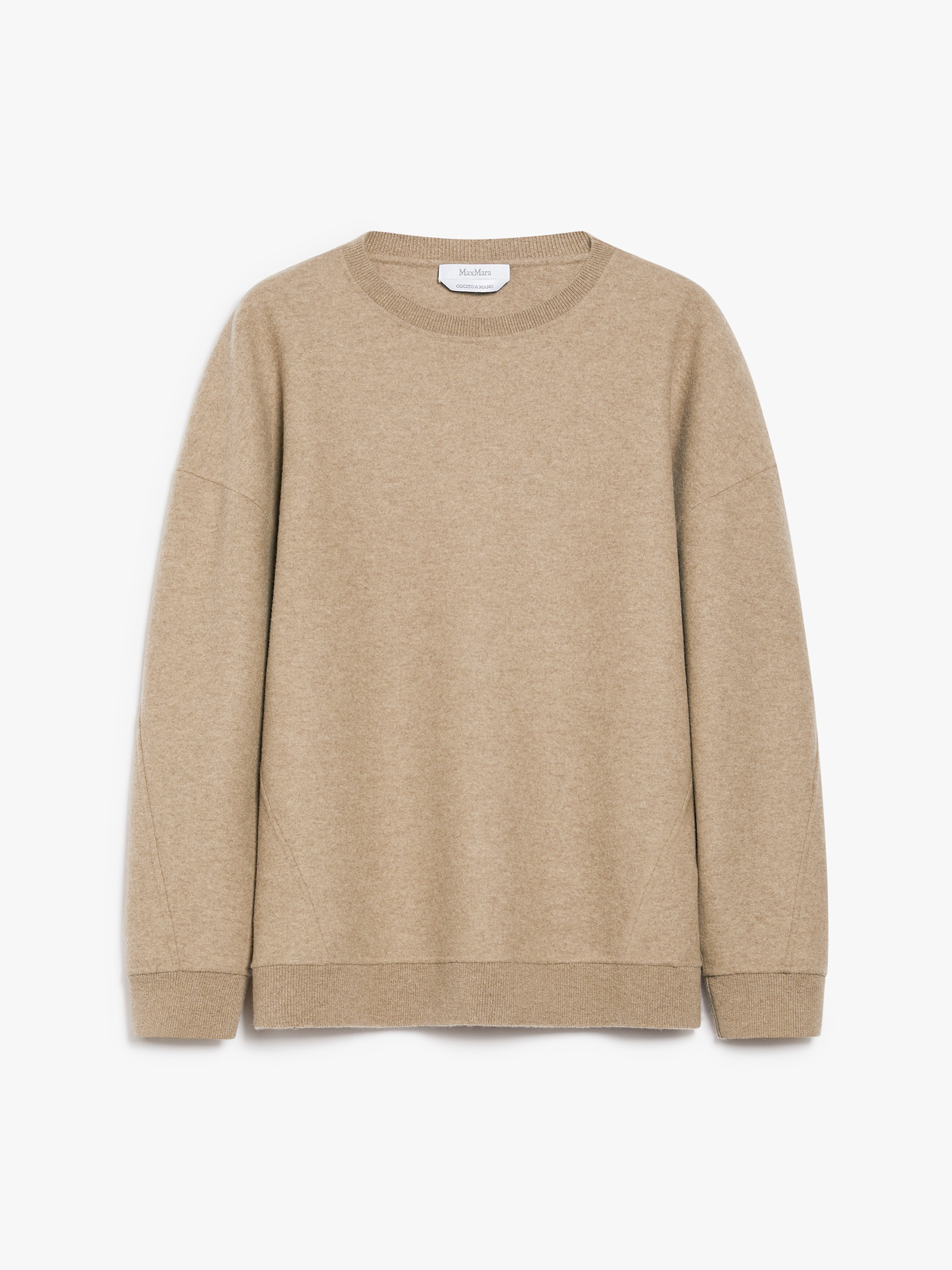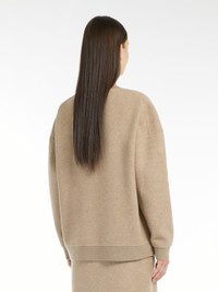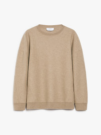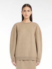 DETAILS Slightly oversized crew-neck sweatshirt made of soft wool and cashmere jersey. Garment with long, low set-in sleeves, ribbed knit edges and matching Max Mara lettering embroidered on the bottom of the left sleeve when worn. COMPOSITION AND CARE Jersey fabric 85% virgin wool, 10% cashmere, 5% polyamide; - exclusive of embroideries. Do not wash; do not bleach; do not tumble dry; cool iron; professionally dry clean perchloroethylene - mild process; do not wet clean.; iron with a cloth between. Distributed by Max Mara S.r.l., registered office in Reggio Emilia (Italy), Via Giulia Maramotti 4, 42124 (IT)