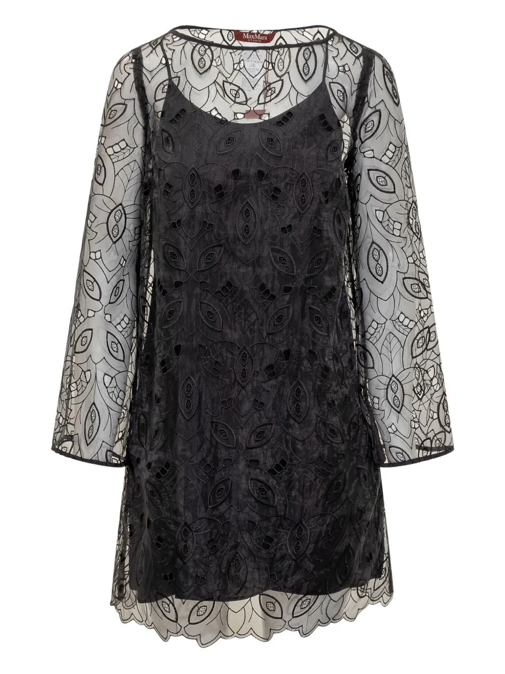 embroidered mini dress Highlights - Black - Round neck - Long sleeves - Internal slip dress Made in Italy Composition Fabric 100%