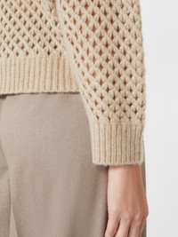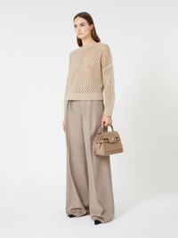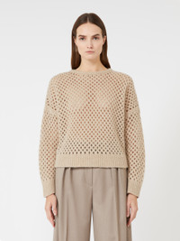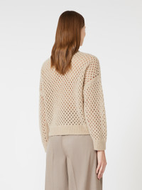 DETAILS Boxy jumper, slightly cropped to the waist. Cashmere and silk fishnet-knit jumper Crew neck Long sleeves with dropped shoulders Straight hem Ribbed edges COMPOSITION AND CARE 75% cashmere, 25% silk. Hand wash cold (40°c max); do not bleach; do not tumble dry; flat drying in the shade; cool iron; professionally dry clean perchloroethylene - mild process; do not wet clean.; iron with a cloth between.; using neutral detergent. Distributed by Max Mara S.r.l., registered office in Reggio Emilia (Italy), Via Giulia Maramotti 4, 42124 (IT)