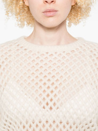 open-knit long-sleeve sweater Highlights - Off-white - Mesh knit - Round neck - Long sleeves - Cropped length - Open-knit pattern Imported Composition Cashmere 75%, Silk 25% SIZE & FIT Model measurements Height 5 ft 9 in(1.75 m) Bust/Chest 34.64 in(88 cm) Hips 36.61 in(93 cm) Waist 26.37 in(67 cm) Washing instructions Read Manufacturer Guidelines