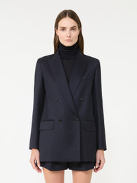 DETAILS Double-breasted blazer with a slightly elongated silhouette, finished with a tailored pick stitch. Pure wool gabardine blazer Straight lines and double slit at the back Collar with peak lapels Long sleeves with slit and buttoned cuffs Four-button fastening Chest pocket and pockets with applied flap on the front Lined in Monogram jacquard fabric COMPOSITION AND CARE Fabric 100% virgin wool; lining 65% acetate, 35% polyester. Do not wash; do not bleach; do not tumble dry; cool iron; professionally dry clean perchloroethylene - mild process; do not wet clean.; wash the garment while it is fastened.; protect buttons before washing.; turn the articles inside out before washing. Distributed by Max Mara S.r.l., registered office in Reggio Emilia (Italy), Via Giulia Maramotti 4, 42124 (IT)