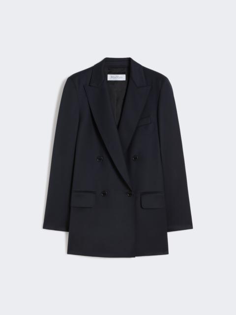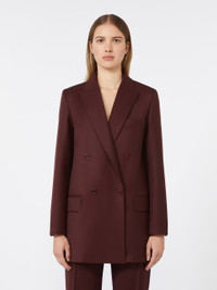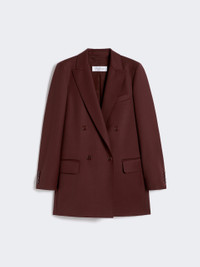 DETAILS Double-breasted blazer with a slightly elongated silhouette, finished with a tailored pick stitch. Pure wool gabardine blazer Straight lines and double slit at the back Collar with peak lapels Long sleeves with slit and buttoned cuffs Four-button fastening Chest pocket and pockets with applied flap on the front Lined in Monogram jacquard fabric COMPOSITION AND CARE Fabric 100% virgin wool; lining 65% acetate, 35% polyester. Do not wash; do not bleach; do not tumble dry; cool iron; professionally dry clean perchloroethylene - mild process; do not wet clean.; wash the garment while it is fastened.; protect buttons before washing.; turn the articles inside out before washing. Distributed by Max Mara S.r.l., registered office in Reggio Emilia (Italy), Via Giulia Maramotti 4, 42124 (IT)