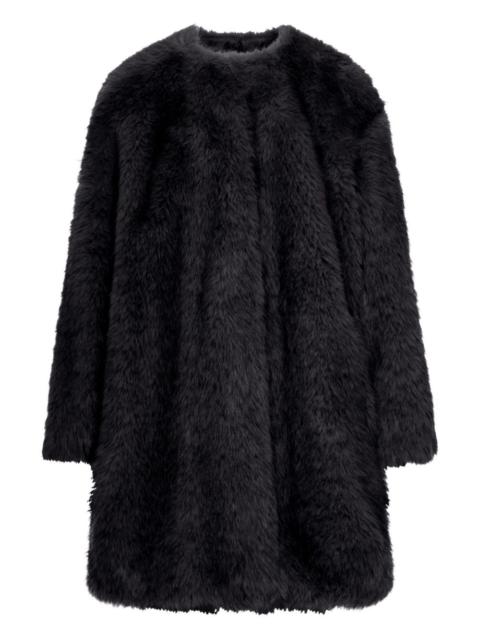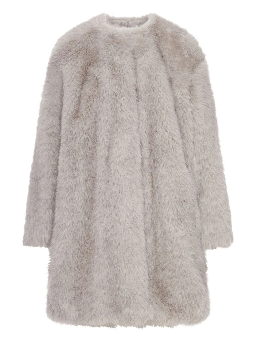 fur round-neck coat Highlights - Pearl grey - Long sleeves - Concealed hook fastening - Inset pockets - Faux fur - Straight hem Made in Italy Composition Fabric 100% Washing instructions Read Manufacturer Guidelines