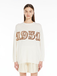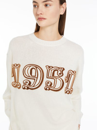 DETAILS Iconic jumper decorated with central textured 1951 embroidery on the front. Wool and cashmere yarn jumper Oversized fit Crew-neck Long low set-in sleeves Rib-knit trims COMPOSITION AND CARE Knitted fabric 70% wool, 30% cashmere; - exclusive of decoration. Do not wash; do not bleach; do not tumble dry; cool iron; professionally dry clean perchloroethylene - mild process; do not wet clean.; iron with a cloth between.; to be ironed with no steam.; do not iron the decoration. Distributed by Max Mara S.r.l., registered office in Reggio Emilia (Italy), Via Giulia Maramotti 4, 42124 (IT)