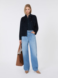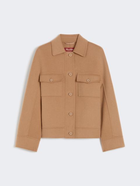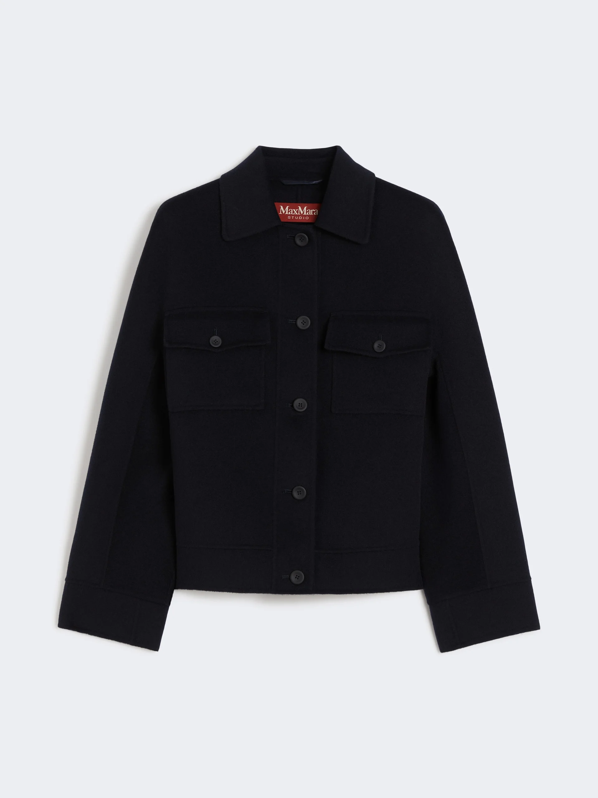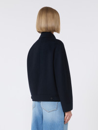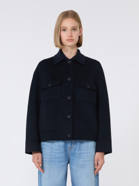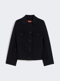 DETAILS Trucker jacket featuring a boxy fit and cropped waist. Silk, cashmere and wool drap double cloth jacket Shirt collar Long sleeves that are kimono style at the front and low set at the back Front fastening with visible buttons Side inset pockets Patch pockets with flap and button on the chest Buttoned toggles on the waist back COMPOSITION AND CARE Fabric 88% virgin wool, 6% silk, 6% cashmere; - except joining thread. Do not wash; do not bleach; do not tumble dry; cool iron; professionally dry clean perchloroethylene - mild process; do not wet clean.; do not iron the buttons. Distributed by Max Mara S.r.l., registered office in Reggio Emilia (Italy), Via Giulia Maramotti 4, 42124 (IT)