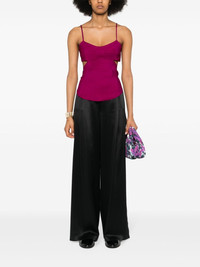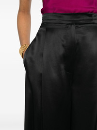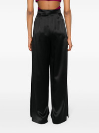 Fiesta silk flared trousers Highlights - Black - Silk - High-waisted - Two side slash pockets - Pleat detailing - Side slits - Wide leg - Concealed front button, hook and zip fastening Made in Italy Composition Silk 100% SIZE & FIT Model measurements Height 5 ft 10 in(1.77 m) Bust/Chest 32.28 in(82 cm) Hips 37 in(94 cm) Waist 25.19 in(64 cm) FittingInformation Designed with a wide-leg cut, these trousers allow for a close fit at the waist and offer a loose and roomy fit over the leg Made from a midweight non-stretch fabric This piece fits true to size – take your usual size