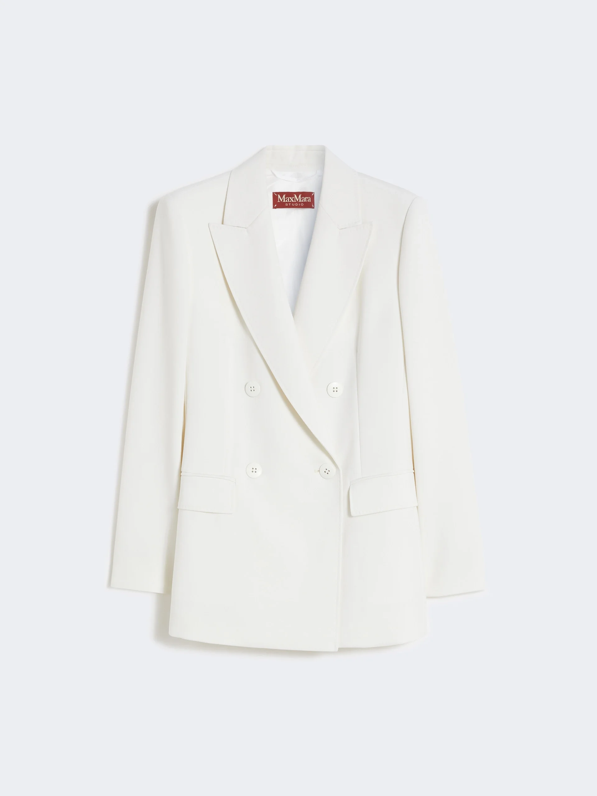 DETAILS Tailored-style double-breasted blazer with a feminine cut. - Blazer in comfortable pure wool satin crepe fabric - Fitted waist with a central rear slit - Peak-lapel collar - Long set-in sleeves with buttoned hem detail - Visible button fastening on the front - Flap welt pockets on the front - Lined model COMPOSITION AND CARE Fabric 100% virgin wool; lining 70% acetate, 30% polyester. Do not wash; do not bleach; do not tumble dry; cool iron; professionally dry clean perchloroethylene - mild process; do not wet clean.; wash the garment while it is fastened.; do not iron the buttons.; protect buttons before washing.; turn the articles inside out before washing. Distributed by Max Mara S.r.l., registered office in Reggio Emilia (Italy), Via Giulia Maramotti 4, 42124 (IT) Collection: Studio Product code: 6041066106010 - MSTGREMBO