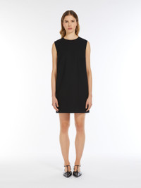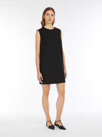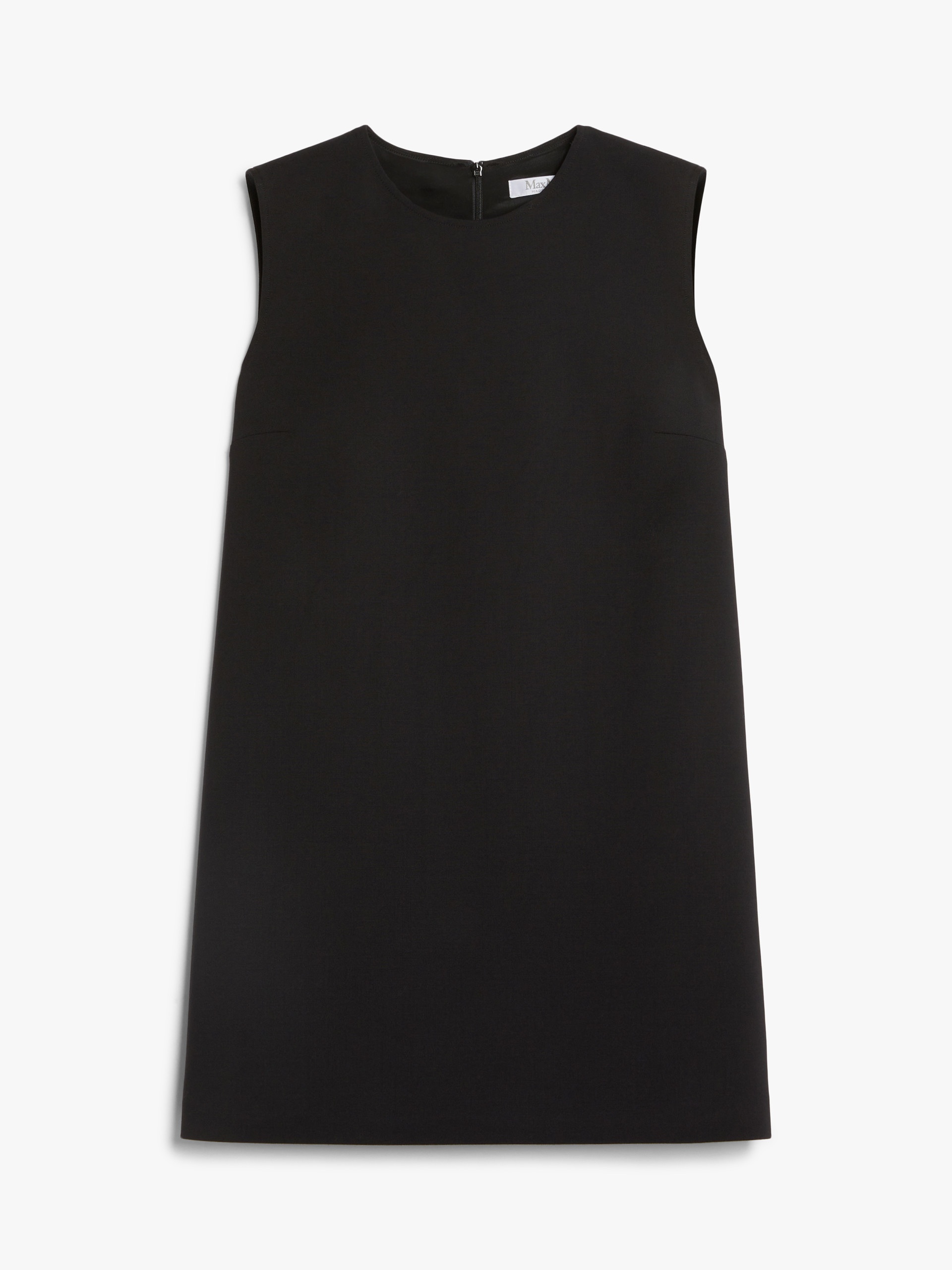 DETAILS Short sleeveless dress made of stretch wool canvas double fabric. Lined, with a straight cut, crew neck and zip fastening on the back. COMPOSITION AND CARE Fabric 96% virgin wool, 4% elastane; - except joining thread; lining 95% acetate, 5% elastane. Do not wash; do not bleach; do not tumble dry; cool iron; professionally dry clean perchloroethylene - mild process; do not wet clean. Distributed by Max Mara S.r.l., registered office in Reggio Emilia (Italy), Via Giulia Maramotti 4, 42124 (IT)