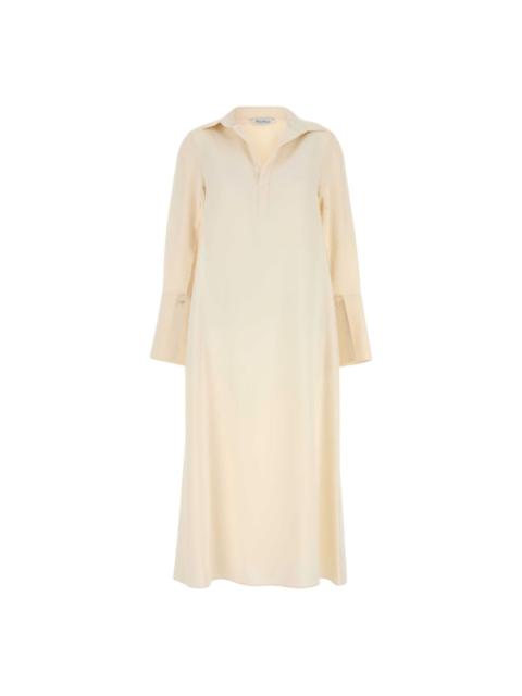 flared dress Highlights - Aquamarine - Collar - V-neck - Long sleeves - Flared hem Made in Italy Composition Silk 91%, Lycra 9% Washing instructions Read Manufacturer Guidelines