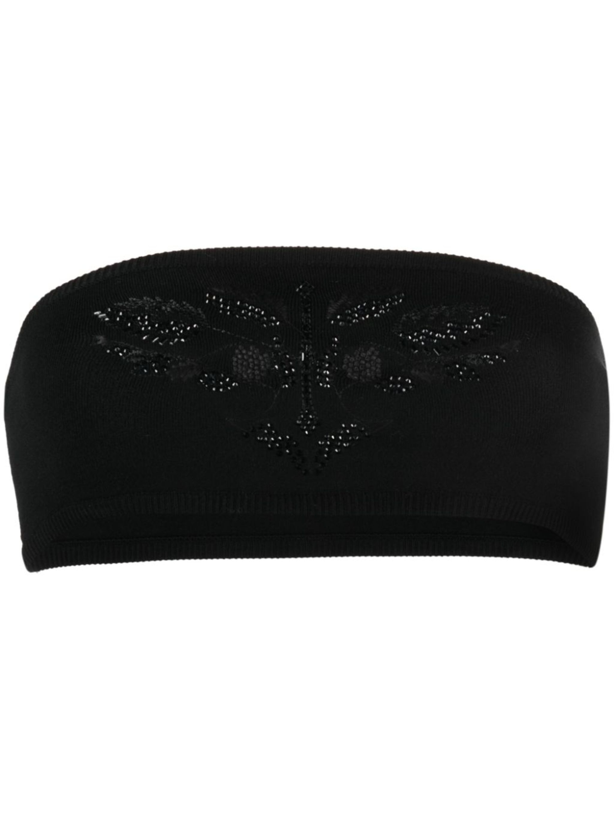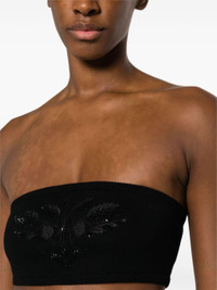 floral-embroidered studded cropped top from Max Mara featuring jet black, ribbed knit, ribbed-knit edge, stud embellishment, floral embroidery to the front, sleeveless, straight hem and cropped. Size & Fit Model Measurements: Bust: 76cm Height: 177cm Hips: 86cm Waist: 56cm