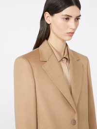 DETAILS Women's single-breasted blazer with tailored silhouette. Precisely crafted construction balancing volumes and proportions. Pure wool broadcloth blazer, fully lined Relaxed fit in a single-breasted design Classic lapel collar Set-in sleeves with decorative buttons at cuffs Front fastening with two buttons Front flap pockets Central rear slit COMPOSITION AND CARE Fabric 100% virgin wool; lining 70% acetate, 30% polyester. Do not wash; do not bleach; do not tumble dry; cool iron; professionally dry clean perchloroethylene - mild process; do not wet clean.; wash the garment while it is fastened.; protect buttons before washing.; turn the articles inside out before washing. Distributed by Max Mara S.r.l., registered office in Reggio Emilia (Italy), Via Giulia Maramotti 4, 42124 (IT)