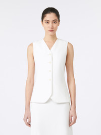 DETAILS Hip-length gilet with a fitted silhouette. - Compact viscose jersey gilet - V neck - Button fastening at the front - Side slits - Lined in Monogram jacquard fabric - Embellished with tailored pick stitch COMPOSITION AND CARE Outer fabric 84% viscose, 11% polyamide, 5% elastane; inner fabric 100% polyester; lining 65% acetate, 35% polyester. Do not wash; do not bleach; do not tumble dry; cool iron; professionally dry clean perchloroethylene - mild process; do not wet clean.; iron with a cloth between. Distributed by Max Mara S.r.l., registered office in Reggio Emilia (Italy), Via Giulia Maramotti 4, 42124 (IT)