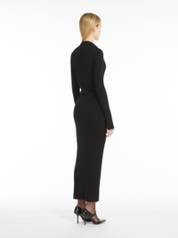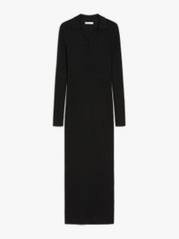 DETAILS A long dress crafted from luxurious wool and lurex yarn, featuring a snug fit, long sleeves and a V-neck open polo collar. The garment is enhanced with a touch of metallic fibre for added luminosity. COMPOSITION AND CARE 86% wool, 10% polyamide, 4% metallised fiber. Hand wash cold; do not bleach; do not tumble dry; flat drying in the shade; cool iron; professionally dry clean perchloroethylene - mild process; do not wet clean.; iron with a cloth between.; using neutral detergent. Distributed by Max Mara S.r.l., registered office in Reggio Emilia (Italy), Via Giulia Maramotti 4, 42124 (IT)