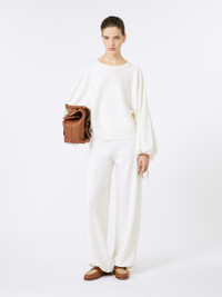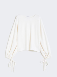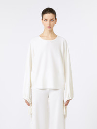 DETAILS Cropped jumper with wide batwing sleeves. Fine pure wool yarn jumper Wide fit Crew neckline Cuff gathered with drawstring detail Horn logo plate on the back of the neck COMPOSITION AND CARE 100% virgin wool. Hand wash cold (40°c max); do not bleach; do not tumble dry; flat drying in the shade; cool iron; professionally dry clean perchloroethylene - mild process; do not wet clean.; iron with a cloth between.; using neutral detergent. Distributed by Max Mara S.r.l., registered office in Reggio Emilia (Italy), Via Giulia Maramotti 4, 42124 (IT)