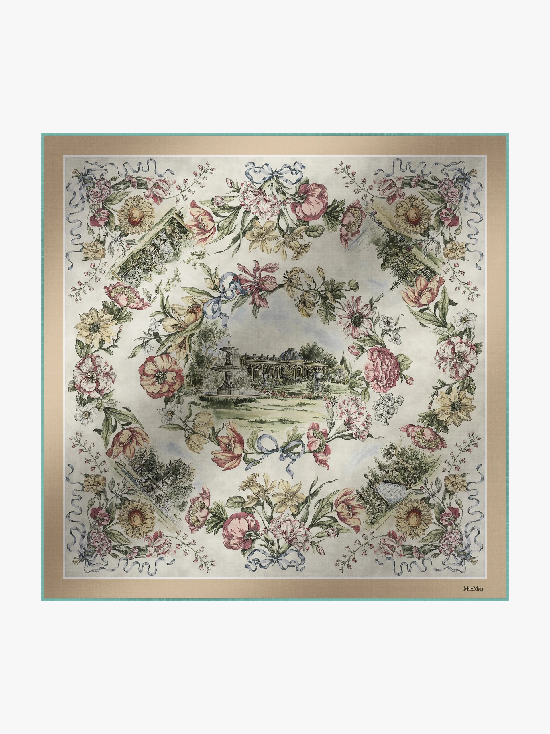 DETAILS Oversized scarf with collection motif printed all over. - Oversized scarf in virgin wool and silk - Fringed trim motif on the edges - Measurements: 123 x 123 cm COMPOSITION AND CARE 70% virgin wool, 30% silk. Do not wash; do not bleach; do not tumble dry; cool iron; professionally dry clean perchloroethylene - mild process; do not wet clean. Distributed by Max Mara S.r.l., registered office in Reggio Emilia (Italy), Via Giulia Maramotti 4, 42124 (IT)