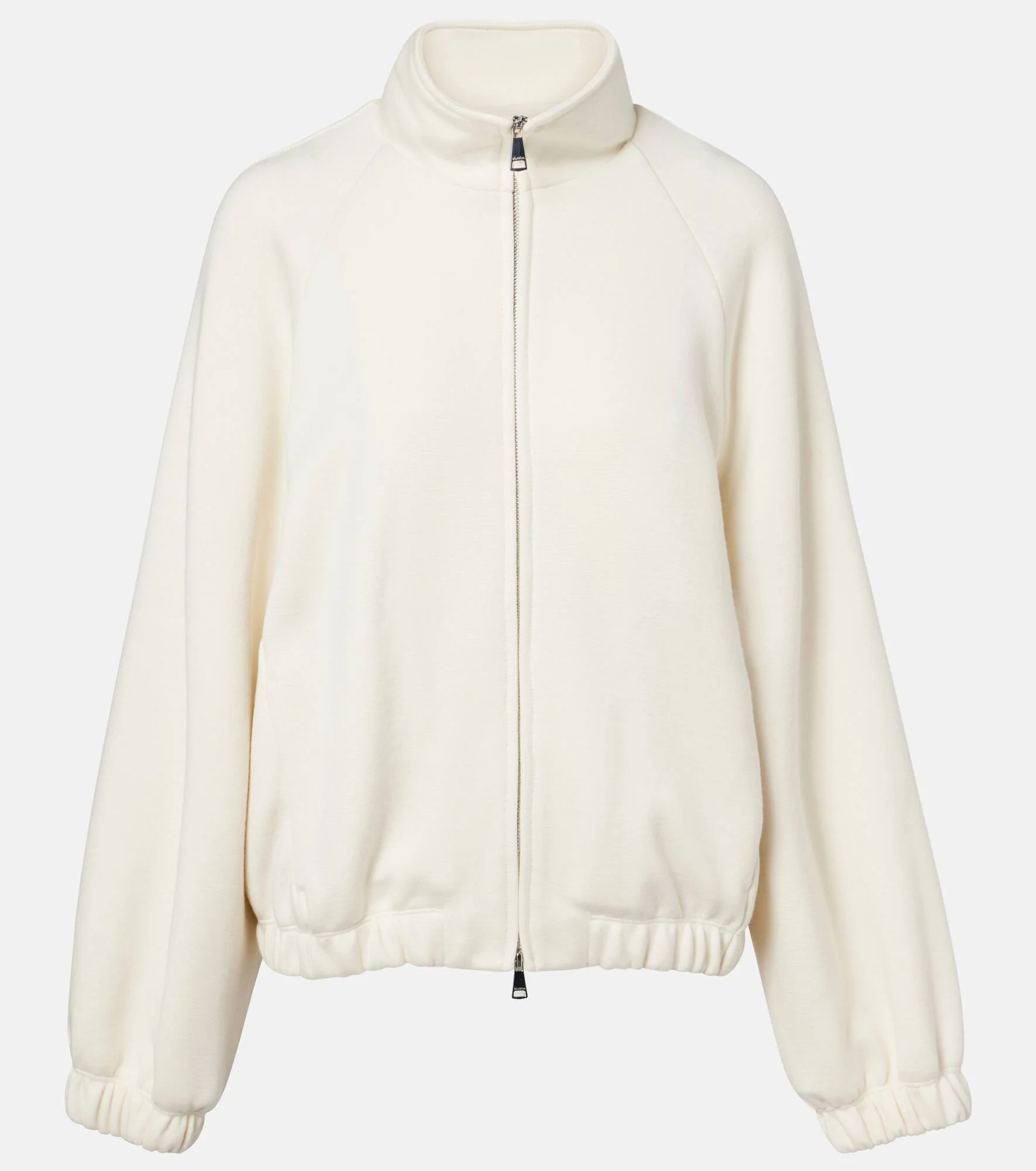 Boasting a rich manufacturing history, Max Mara represents the quintessence of Italian sophistication and expertise. The Frine jacket is made from soft cotton and wool-blend jersey into a boxy, zip-up silhouette with an elasticated hem and cuffs. Product Details - Material: 46% wool, 44% cotton, 10% polyester - Care instructions: hand wash - Made in Romania - Designer color name: Avorio - Item color: white - Closure: two-way zipped front - Pockets: side slit pockets - Cuff: elasticated - Hem: elasticated - Item number: P01094310 Size & Fit - True to size - Designed for a loose fit - Elasticated hem - Slightly stretchy fabric - Falls to the hip - The model seen in the picture is 178cm-5'10" and wearing a size XS