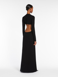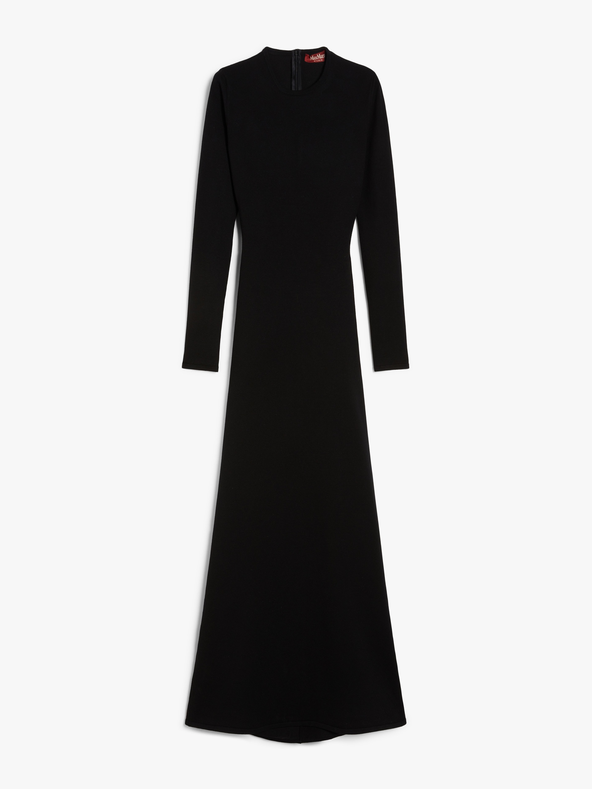 DETAILS Slim-fit long dress in stockinette-stitched stretch viscose yarn featuring a crew neckline and long sleeves. The feminine cut boasts deep cut-out detail at the back and a slightly flared skirt. Back zip fastening. COMPOSITION AND CARE 55% viscose, 34% polyester, 10% polyamide, 1% elastane. Do not wash; do not bleach; do not tumble dry; cool iron; professionally dry clean perchloroethylene - mild process; do not wet clean.; iron with a cloth between. Distributed by Max Mara S.r.l., registered office in Reggio Emilia (Italy), Via Giulia Maramotti 4, 42124 (IT)