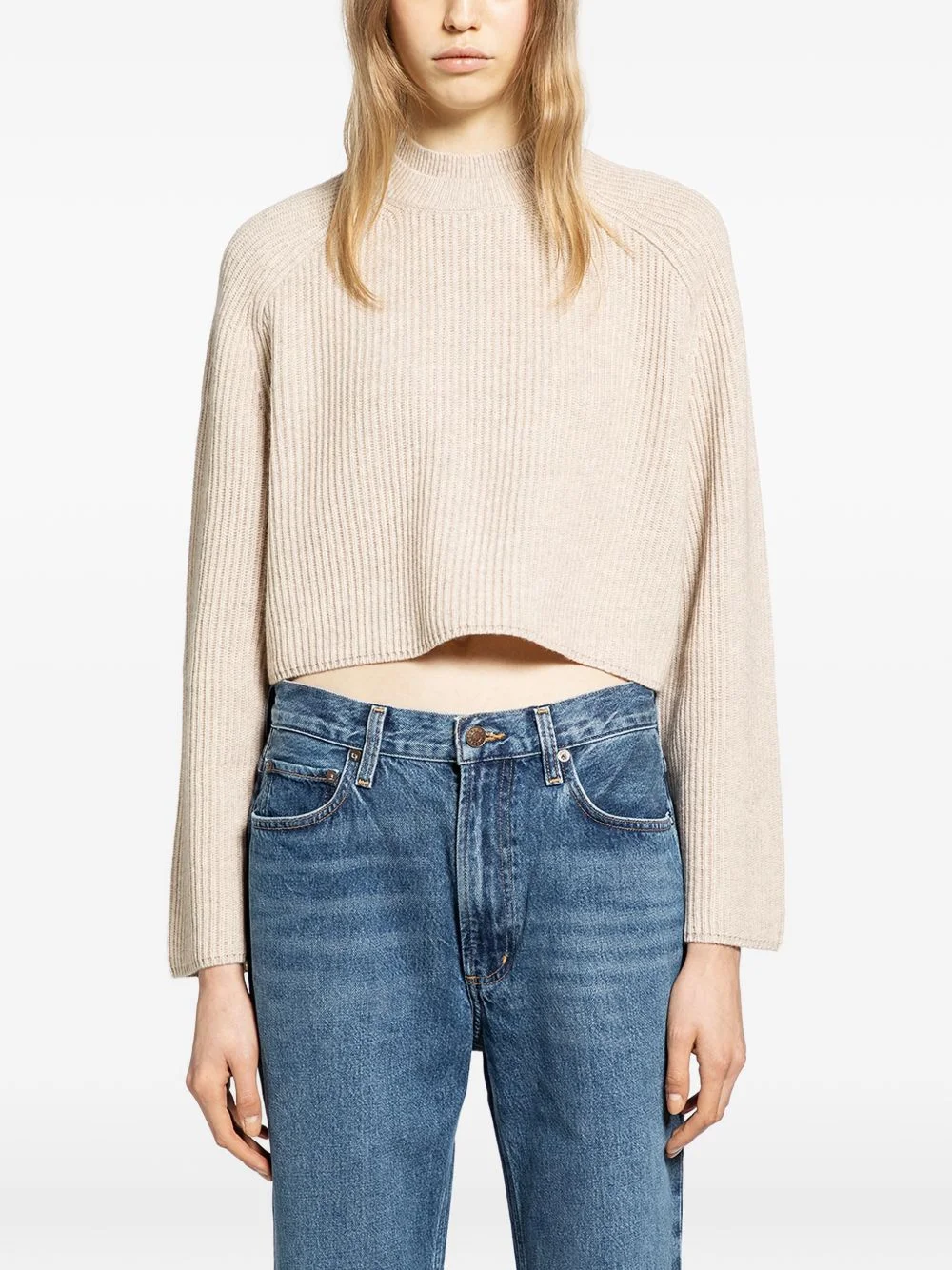 Funale sweater Highlights - Beige - Ribbed knit - High neck - Cropped style - Long sleeves - Gold-tone logo plaque to the rear Made in Italy Composition Wool 70%, Cashmere 30% Washing instructions Hand Wash