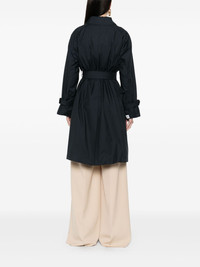 gabardine-weave trench coat Highlights - Navy blue - Double-breasted button fastening - Long sleeves - Belted waist - Two front jetted pockets Imported Composition Cotton 66%, Polyester 34% SIZE & FIT Model measurements Height 5 ft 10 in(1.78 m) Bust/Chest 33.46 in(85 cm) Hips 36.22 in(92 cm) Waist 23.22 in(59 cm) FittingInformation Designed to be unstructured, offering a loose fit throughout The belt offers adjustability for fitted preferences Made from a midweight non-stretch fabric