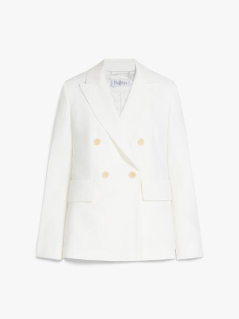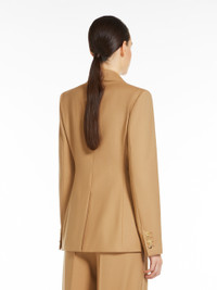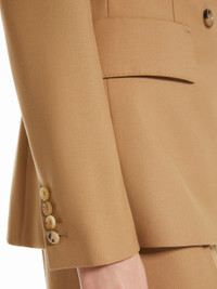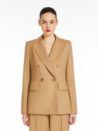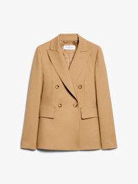 DETAILS Double-breasted blazer made of luxurious gabardine wool. Semi-fitted silhouette with a peak lapel collar, welt pockets with flap applied on the front and set-in sleeves with buttons on the cuffs. Lined in customised fabric with a central vent on the back and front fastening with visible buttons. COMPOSITION AND CARE Fabric 100% virgin wool; lining 65% acetate, 35% polyester. Do not wash; do not bleach; do not tumble dry; cool iron; professionally dry clean perchloroethylene - mild process; do not wet clean.; wash the garment while it is fastened.; do not iron the buttons.; protect buttons before washing.; turn the articles inside out before washing.; contains non-textile parts of animal origin. Distributed by Max Mara S.r.l., registered office in Reggio Emilia (Italy), Via Giulia Maramotti 4, 42124 (IT)